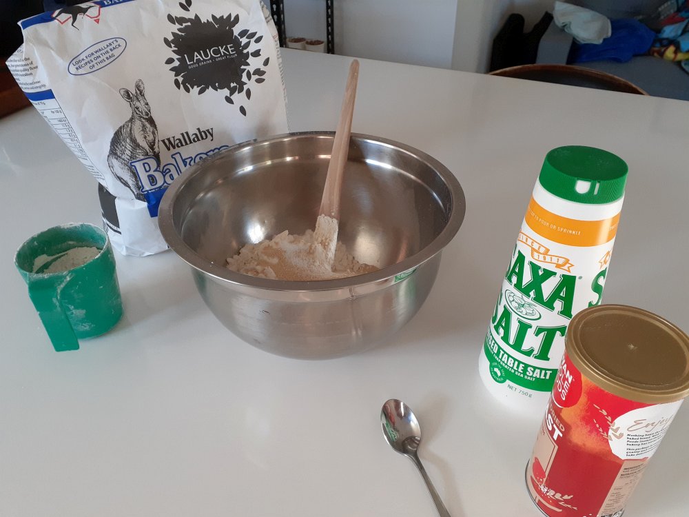 Add the flour, yeast and salt to the bowl and mix.