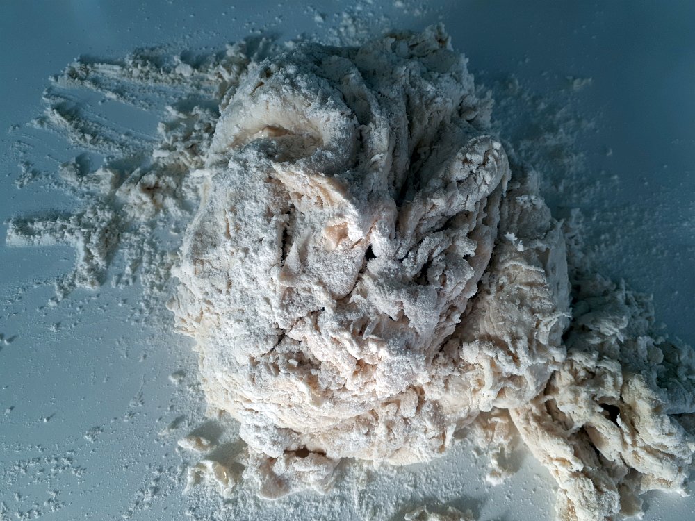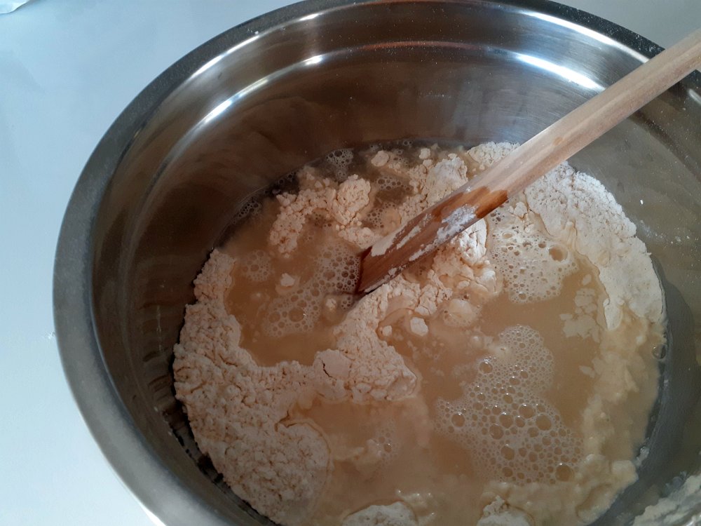Add the water and mix to a messy looking dough.