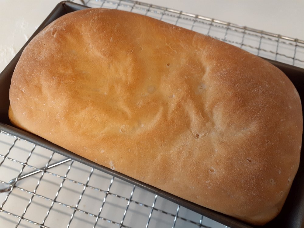 You'll notice in the image above that my loaf has sunk during the first minutes of baking, likely because I let it rise too much on the second rise. This misshap didn't detract from the eating quality.